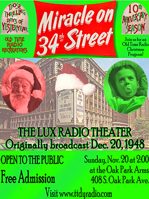 233 | 11/20/11 | Those Thrilling Days of Yesteryear LUX RADIO THEATRE: Miracle on 34th Street ![]() | Mr. Sawyer |