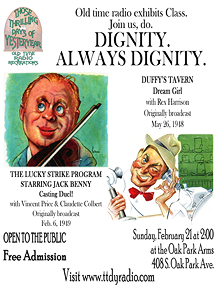 270 | 2/21/16 | Those Thrilling Days of Yesteryear THE LUCKY STRIKE PROGRAM STARRING JACK BENNY: Casting Duel DUFFY'S TAVERN: Dream Girl ![]() | Director Transcriber |