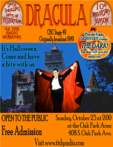 232 | 2/13/11 | Those Thrilling Days of Yesteryear CBC STAGE 49: Dracula LIGHTS OUT: The Dark ![]() | Swales/Coachman Insideout Man/Arch Oboler Director (The Dark) Transcriber (The Dark) |