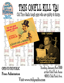 277 | 1/8/17 | Those Thrilling Days of Yesteryear THE SAINT: The Horrible Hamburger OLD GOLD COMEDY THEATER: A Slight Case of Murder ![]() | Director/Transcriber |
