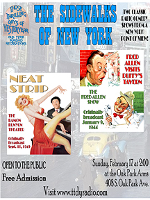 246 | 2/17/13 | Those Thrilling Days of Yesteryear THE DAMON RUNYON THEATER: Neat Strip THE FRED ALLEN SHOW: Fred Visits Duffy's Tavern ![]() | Transcriber Director |
