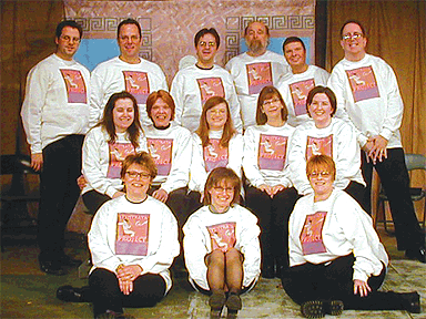 164 | 3/3/03 | Lysistrata![]() click on the picture to learn more about the Lysistrata Project pictured: top row: Ben Dooley, Steve Schroeder, Tony Kortas, Rick Pierce, Bob Grudzien, me; middle row: Alexandra Vorgias, Joy Kenyon, Margie Gustafson, Pam Turlow, Julie Nelson; bottom row: Diane McFarlin, Janet Perry, Cindy Hardy Pierce ![]() pictured: Margie Gustafson, Joy Kenyon | Magistrate Script Adaptation |